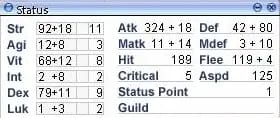 STR a tope hasta llegar al último bono posible, la AGI cuadrada a 20 es importante para dejar el cooldown clavado en 1 seg, el mínimo fixed de la skill. DEX 90 nos pone en menos de 0,5 seg de cast además de su buen puñado de hit y daño extra. El resto en vida para superar los 17k y ganar algo de resistencia contra estados.