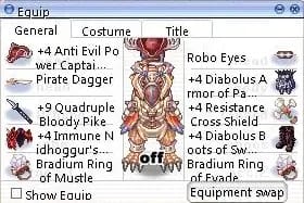 ♦Pirate Dagger o Gangster Scarf: más ATK, hay una tal Captain’s Pipe por las databases que comba con el gorro y seria mucho mejor, pero no he encontrado nada de como se consigue así que no la he contado, lo mismo pasa con la Samurai Mask, que daría %ATK