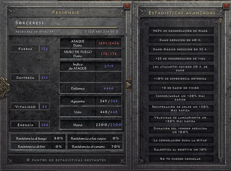 Cuando éramos adolescentes jugábamos de vez en cuando torneítos en el ciber: PvP, ver hasta donde avanzábamos en x tiempo y cosas así, y la build que mas me gustaba usar a mi era una hechicera super tanque, muy en la línea de estas que he descubierto ahora; pero claro, en aquel entonces no sabíamos nada de como funcionan en profundidad los daños y defensas del juego, ni cuales son los breakpoints de faster cast rate o faster hit recovery, de hecho no sabíamos ni qué coño eran esas cosas…